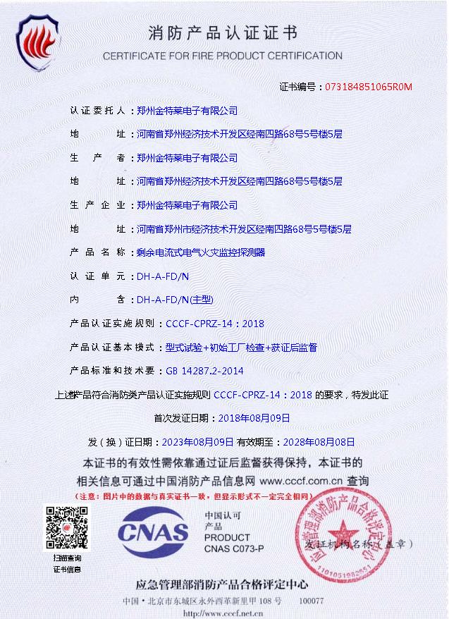 公司产品拥有自主知识产权,并通过相关部门的检测和认证。公司研发生产DH-A型系列电气火灾监控与消防设备电源监控系统。研发出“智慧消防云平台”“环保用电监控系统”“智慧用电”“智慧断路器”等智能系统。